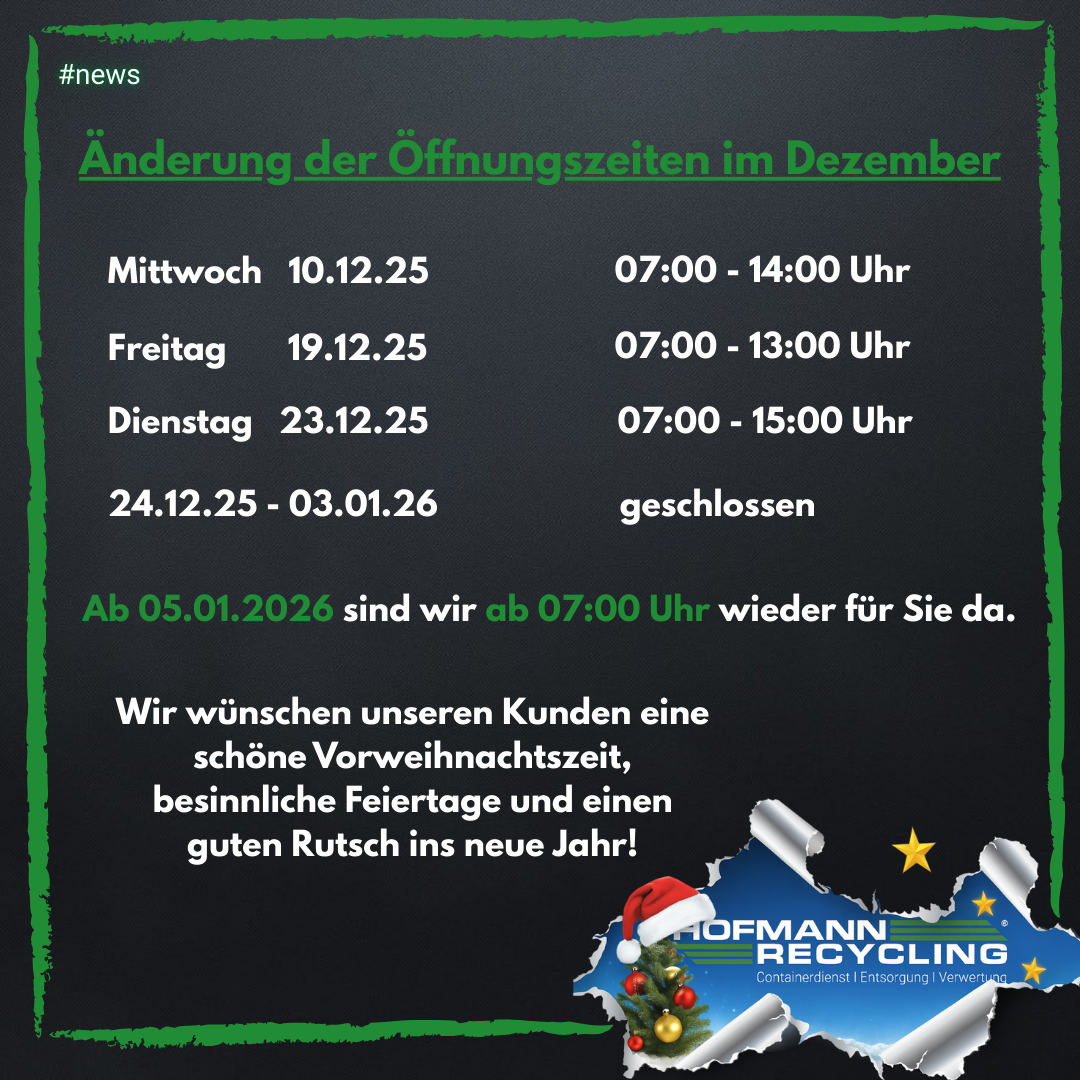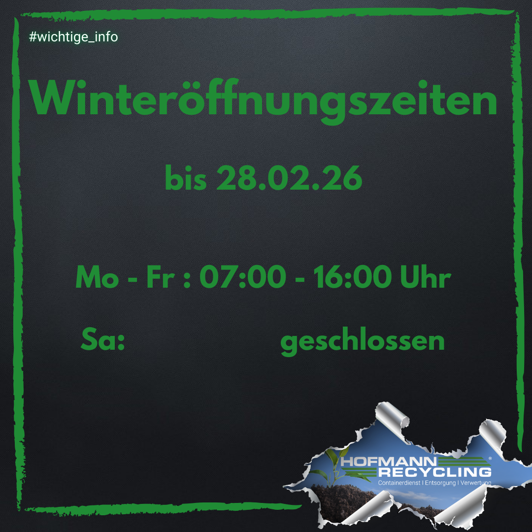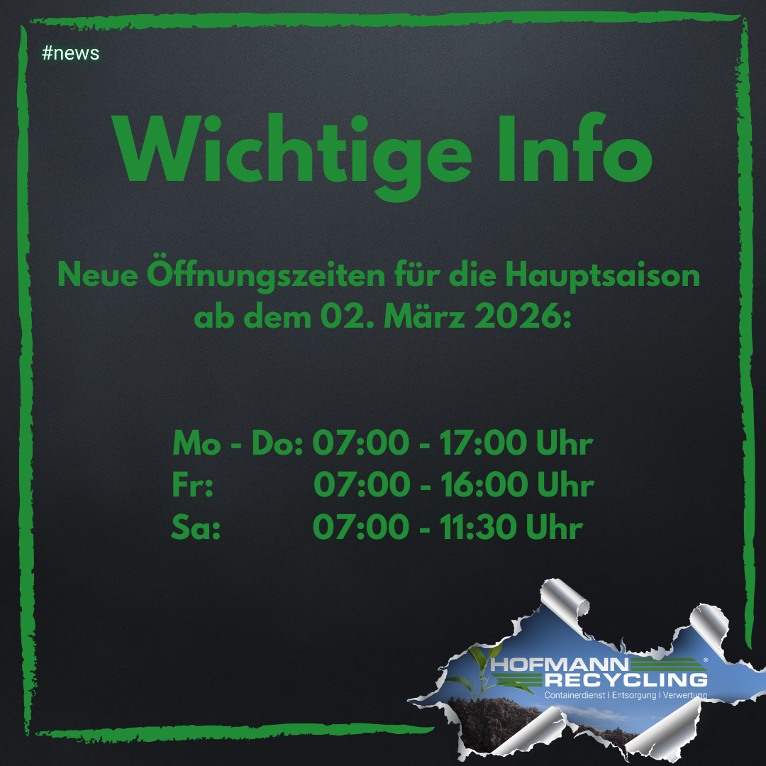 Hofmann Recycling macht Ihnen das optimale Angebot für Ihre Entsorgung. Je nach Menge und Anfall Ihres zu entsorgenden Stoffes können wir Ihnen Container von 2 m³ bis 36 m³ anbieten.